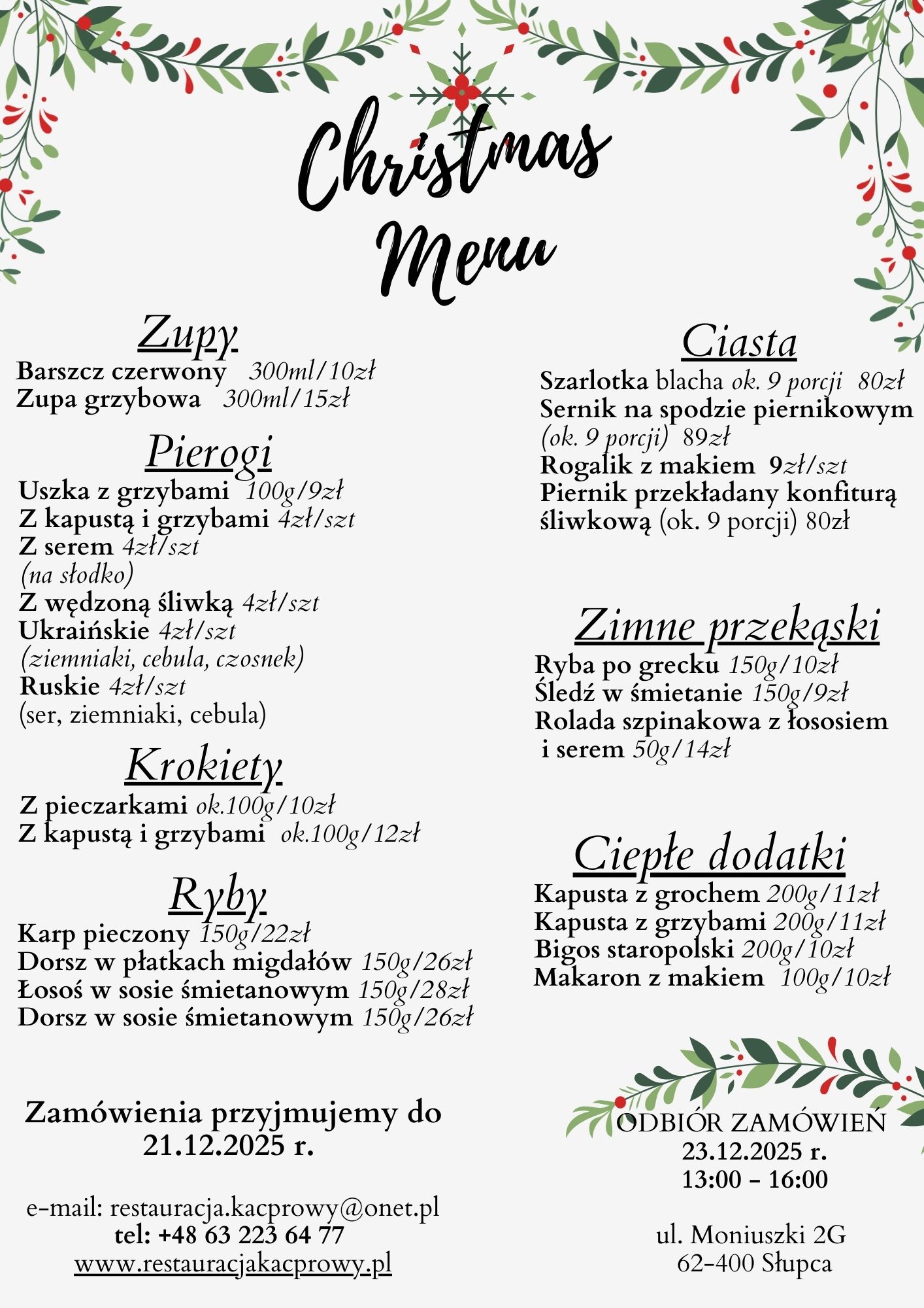 KARTA MENU NA DZIŚ